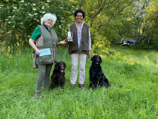 The highest scoring Flatcoated Retrievers on the day, jointly awarded the FCRS Varingo Trophy, were Mrs Jo HEWISON & her Dog Casblaidd Chase Me Charlie and Mrs Sarah YOUNG & Waverton I Wish I Could Fly at Larksburn.