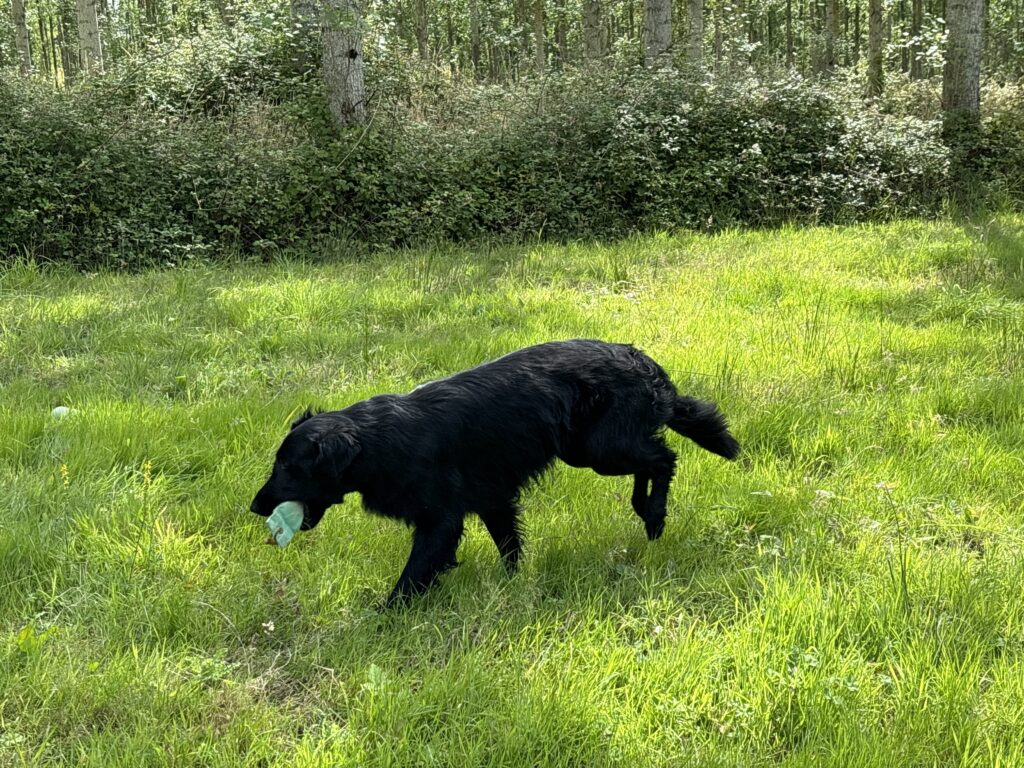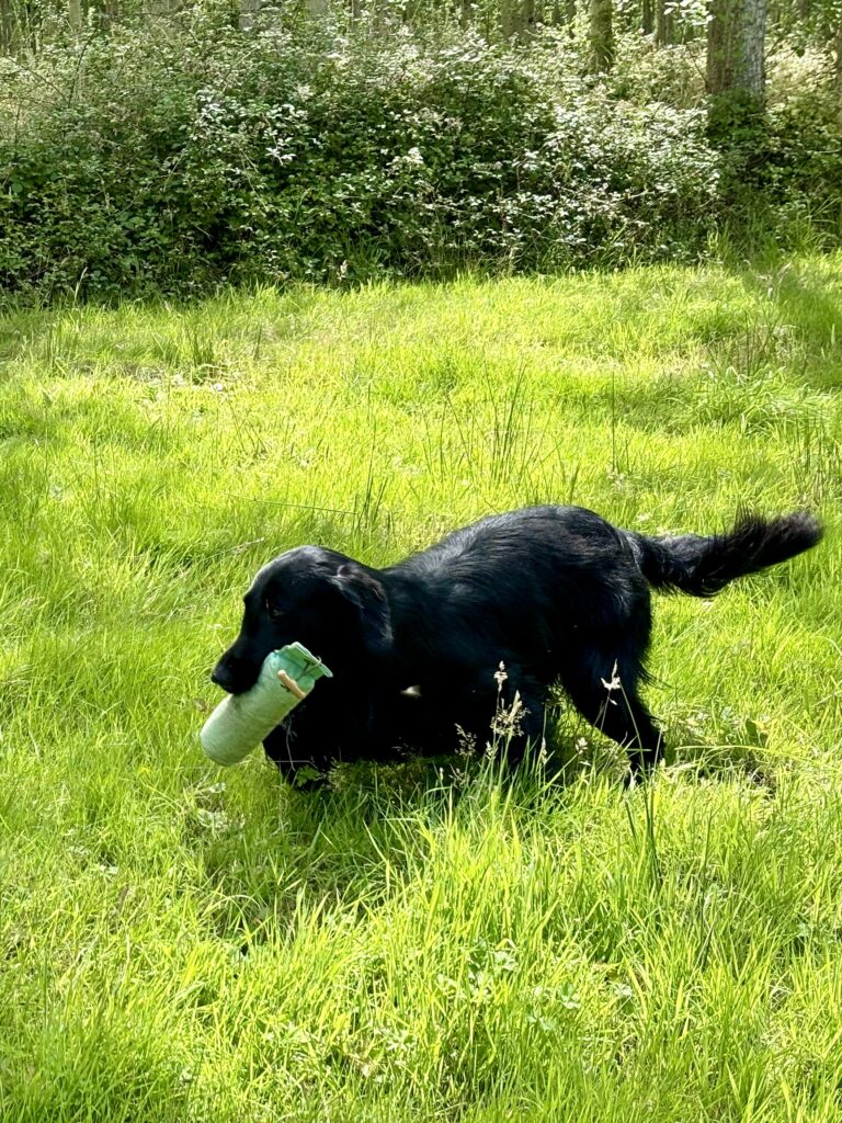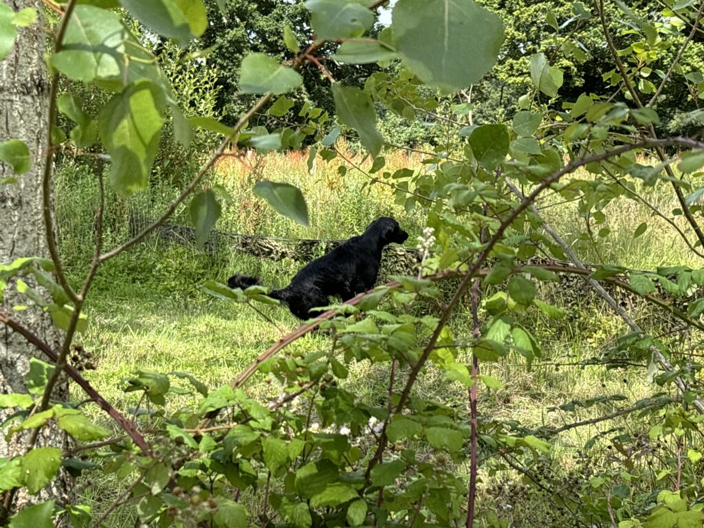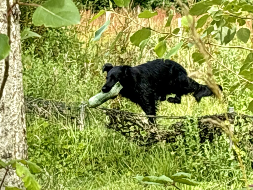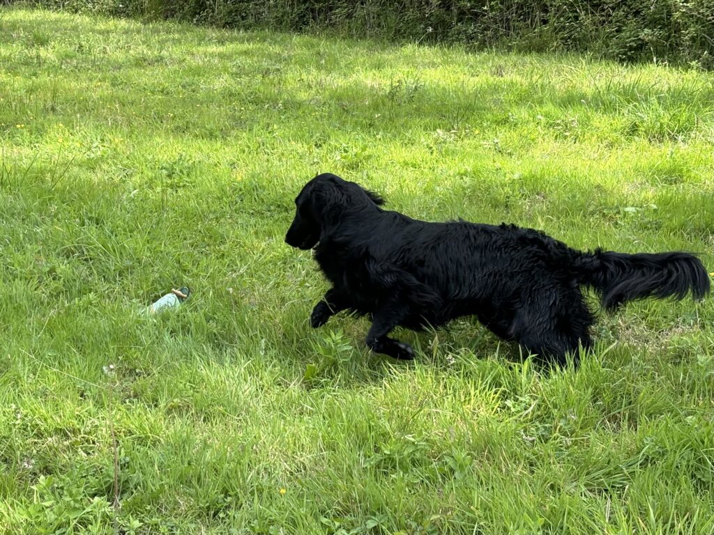 On 13/7/24 FCRS held the first of two Kennel Club Working Gundog Certificate assessment days that have been organised for this summer. Today we were at Wisborough Green in West Sussex, hosted by Woodruff Gundogs. Our two assessors, Liz Barnes and Julie Elborough, were both friendly and supportive and did a super job putting handlers at their ease and explaining each exercise to them. The ground at Wisborough Green, home of Woodruff Gundogs, was perfect for the assessments with jumps, water and a variety of cover available. 10 dogs were entered for the assessment – seven Flatcoated Retrievers, one Golden Retriever and two Labrador Retrievers.