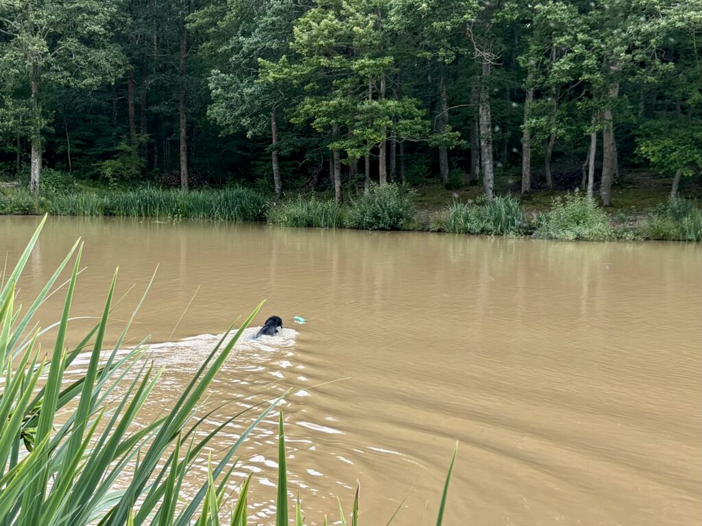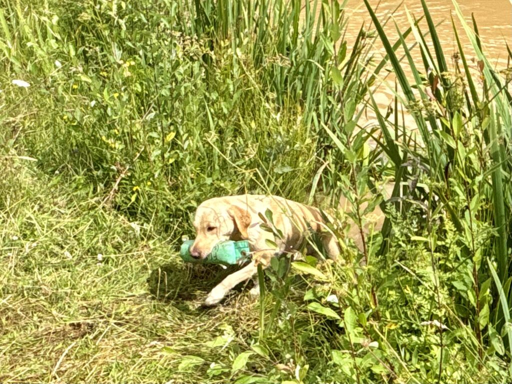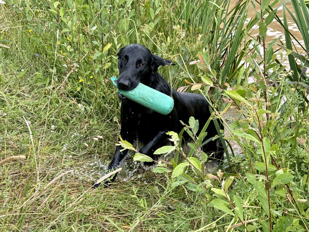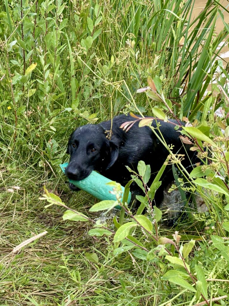 There was a simple marked retrieve from water – which assessed willingness to enter water and swim, control, ability to retrieve and deliver securely to their handler.